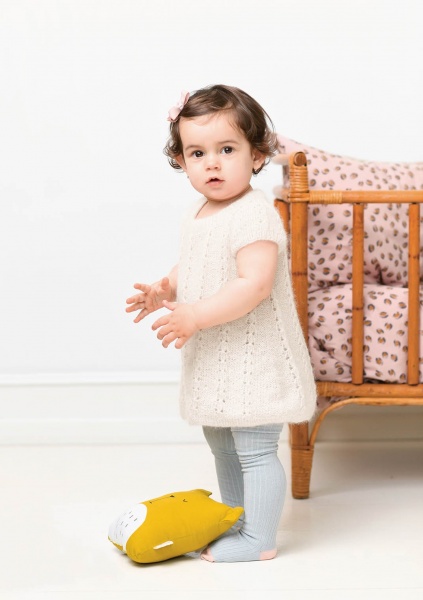 Her kommer et nytt smårollinghefte. Vi vet jo at folk elsker å strikke til disse søtnosene. Her finner du klær som passer til hverdag, lek og fest. Style det etter smak og anledning. Lek med tilbehør i sterke eller sobre farger. Skal strømpebuksene være knall gule eller grå? Vi håper du lar deg inspirere, tar strikkepinnene fatt og skaper noe nytt til herlige små gullunger.