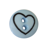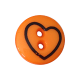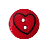 Plastknapp med hjertemotiv i forskjellige farger.