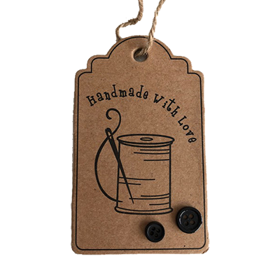 Stor plass på baksiden til å skrive informasjon om plagget du har laget.