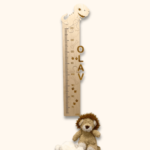Kjempefin høydemåler i bjørkefinér og Dinosaur motiv som er veldig dekorativ på barnerommet.