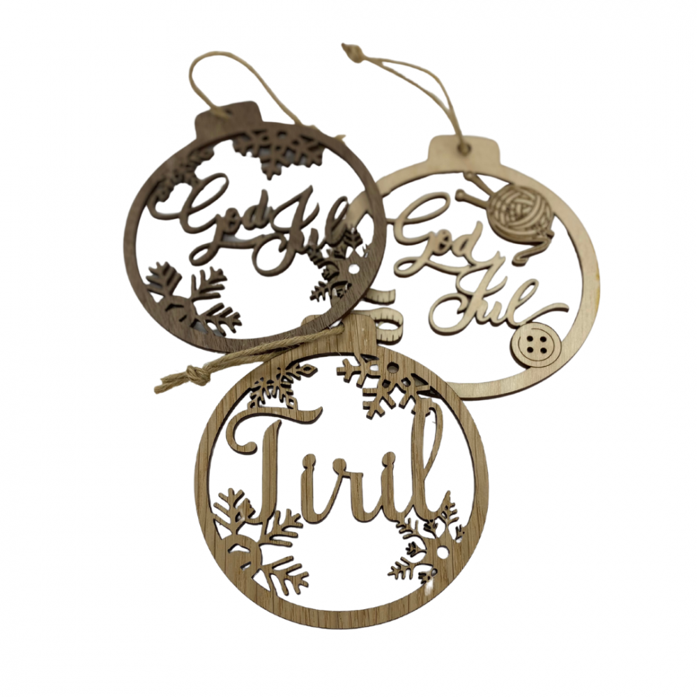 Julen nærmer seg og vi selger nå julekuler der du selv kan designe din egen julekule. Sett sammen julekulen ved å velge skrifttype, treverk, tema og valgfri tekst. Perfekt som gave eller til deg og din familie!