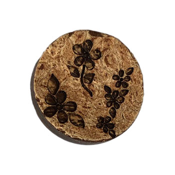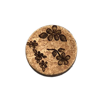 Kokosknapp med blomster. Hull på undersiden.