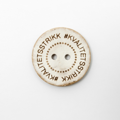 Kokosknapp med teksten: #KVALITETSSTRIKK
