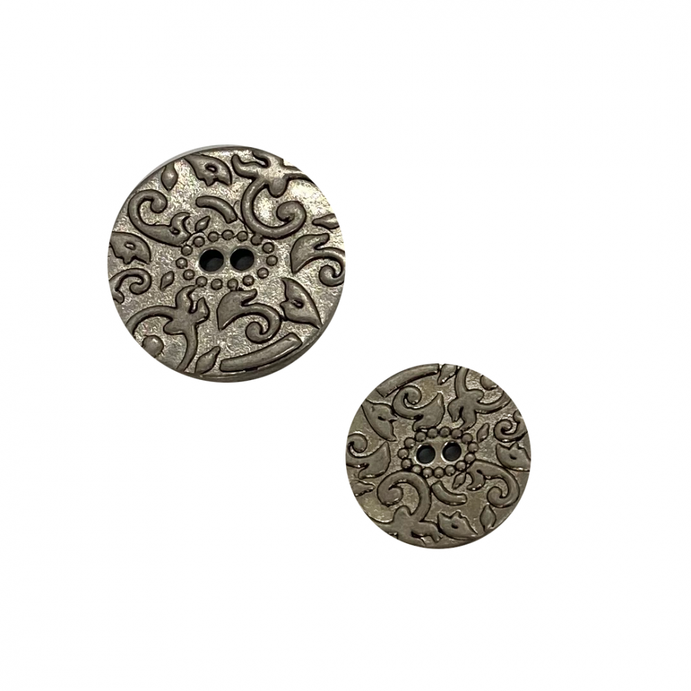 Metallknapp med brokademønster. Finnes i 15 og 20mm.