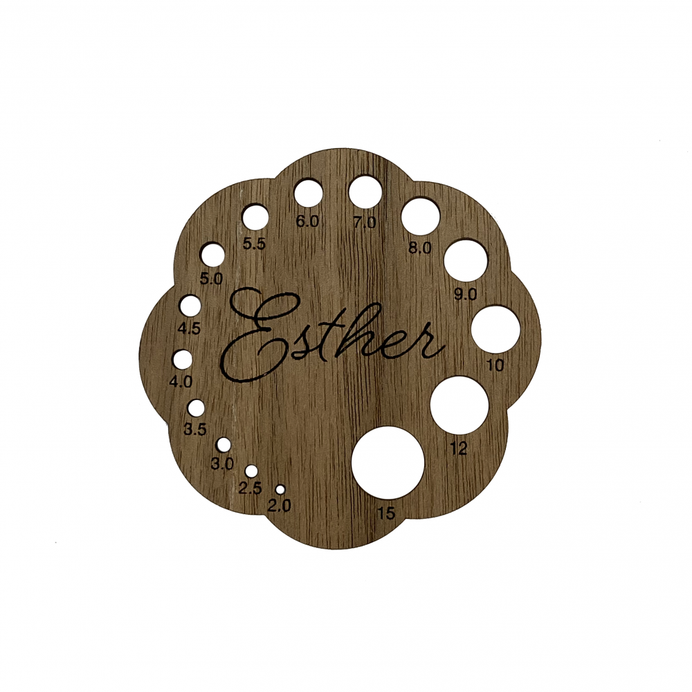 Kjempefin Pinnemåler med hull for å måle pinnestørrelsene 2,0 - 15mm.