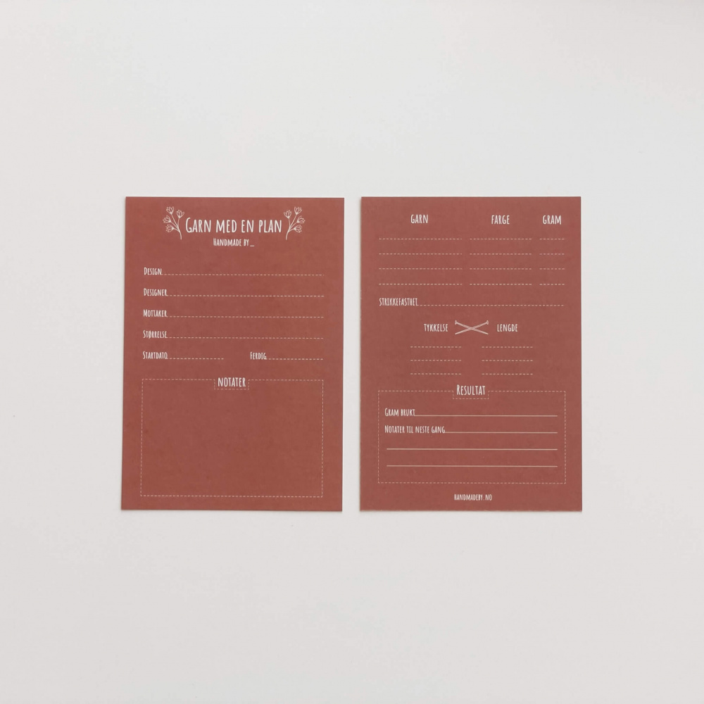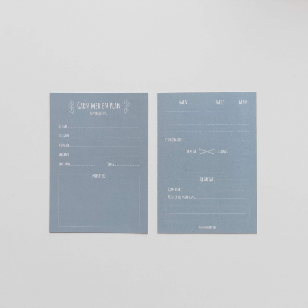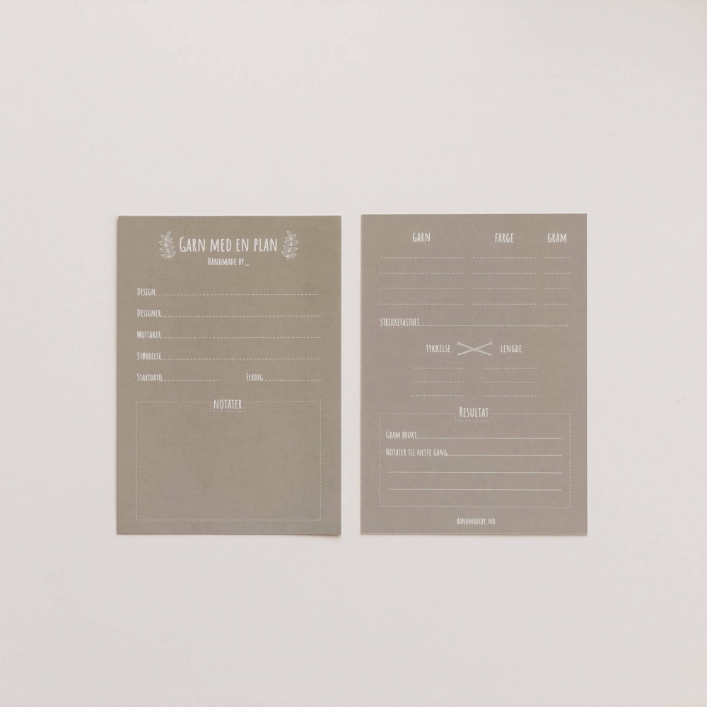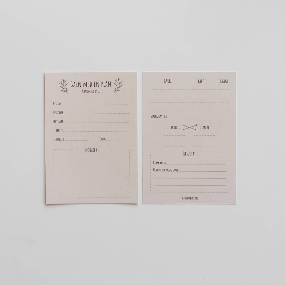 Planlegg dine neste strikkeprosjekt med geniale prosjektkort! Har du oppleggsyken, et garnlager du ønsker å minke eller prøver du å bruke opp garnrestene? Legg en plan for hva nøstene skal brukes til! Skriv ned resultater i etterkant og ta vare på kortet til neste gang du skal strikke samme oppskrift!