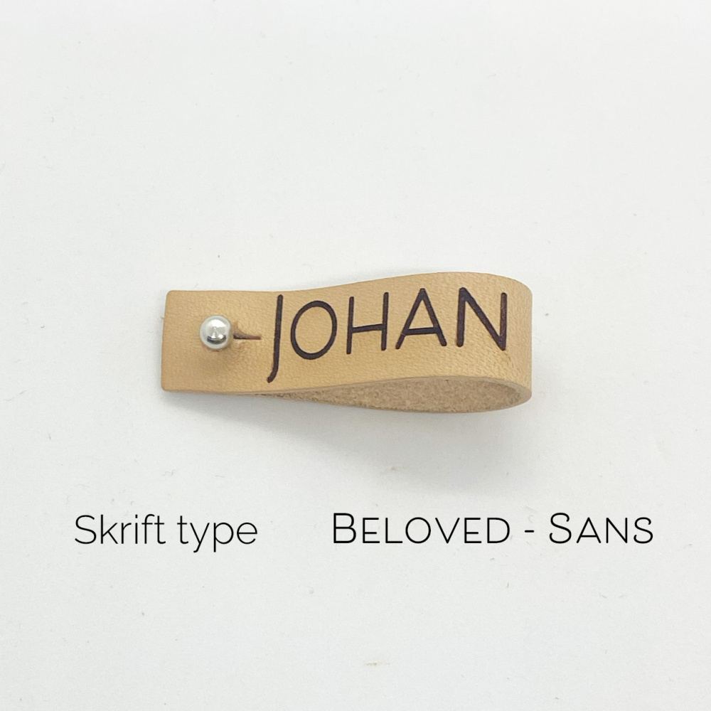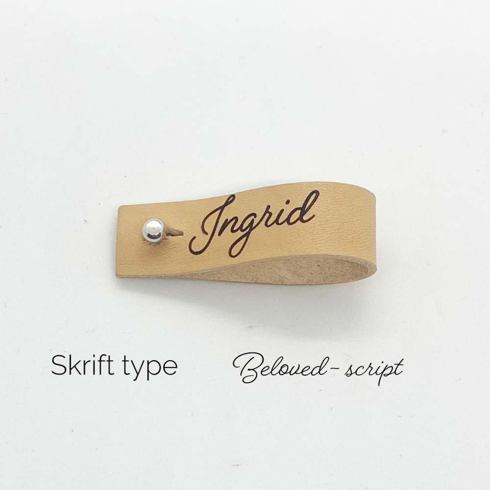 Tilpasset skinnlapp med valgfri tekst – Perfekt for tøy og tilbehør