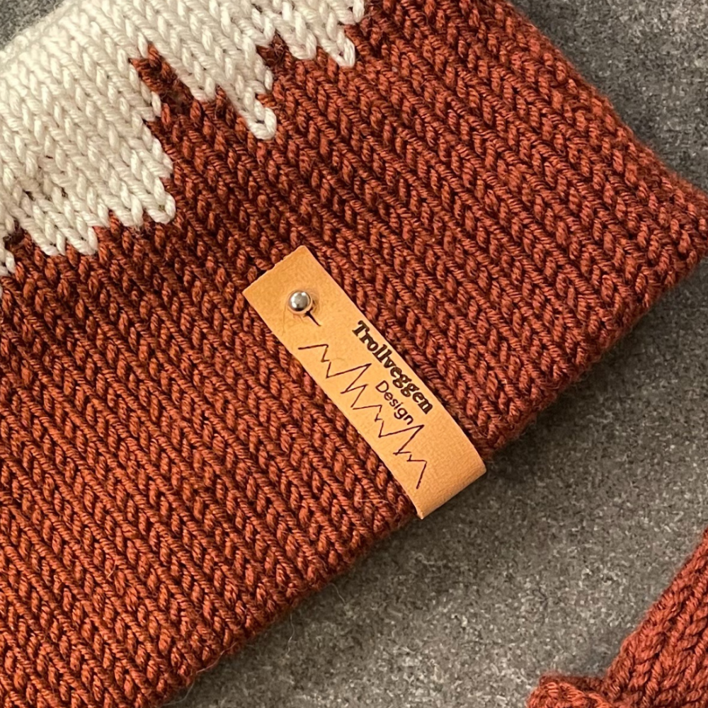 Skinnlapper til Trollveggen Design sine strikkeoppskrifter. Kan brukes til å brette over vrangbord/kant. Knapp til å lukke/feste, dette gjør det enkelt å ta av ved vask, flytte eller ha på annet plagg etter behov.