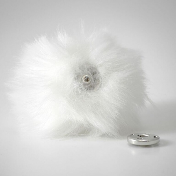Dusk i kunstig pels. Dusken har trykk knapp som gjør den enkel og ta av og på hvis du må vaske plagget den er festet på.