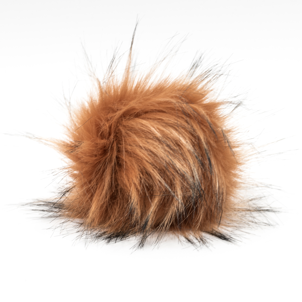 Dusk i kunstig pels. Dusken har trykk knapp som gjør den enkel og ta av og på hvis du må vaske plagget den er festet på.