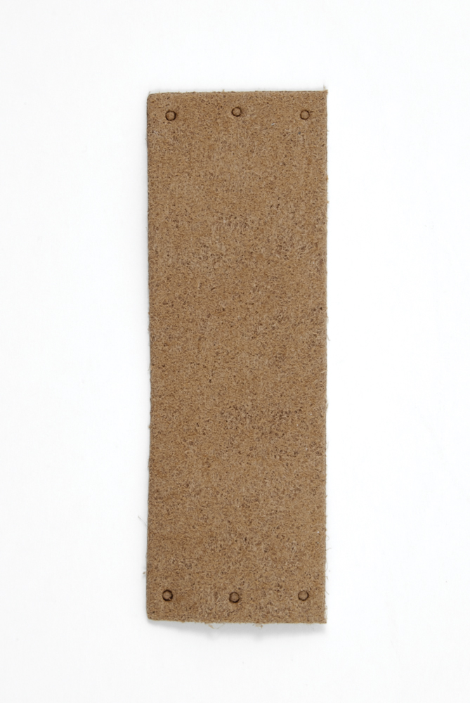 Symerke i imitert skinn med tekst/motiv til vrangbord og sømkant.